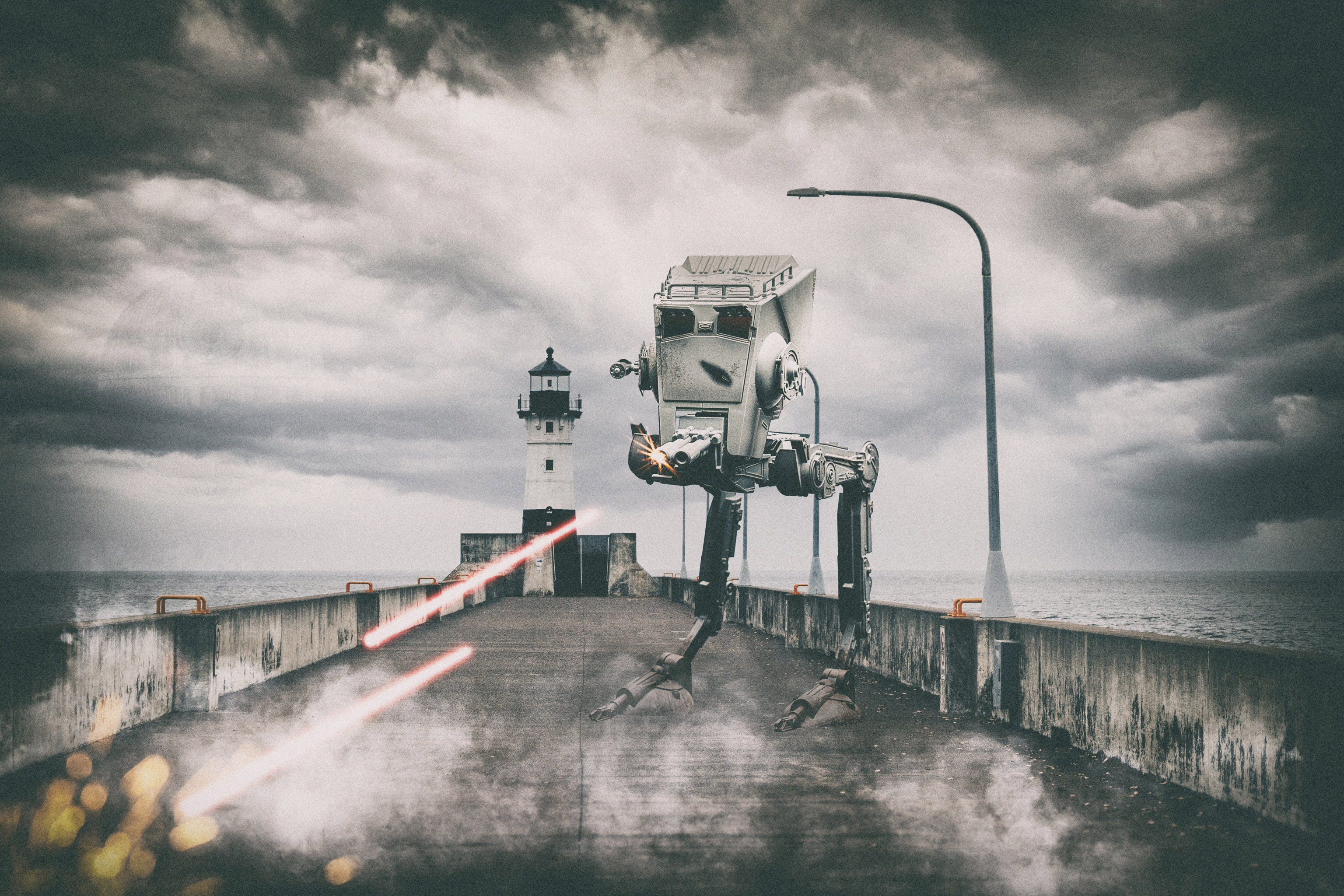 This week I’m revisiting a series I did a couple years ago. Winter is always a slower time of year for me, so I try to come up with a new project to undertake each year. During this particular year, I noticed the Star Wars toys in our house and wanted to challenge myself with a project involving lighting and compositing. I decided to place the Star Wars toys in scenes from where I live. To do this, I first captured background shots around town and then moved into my basement to start lighting and compositing the toys to match these scenes. Last week, a friend who owns a shop in town asked about selling prints from this series, so I thought it would be fun to make a post about them. Her shop is Hucklebeary in Duluth.